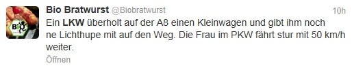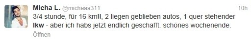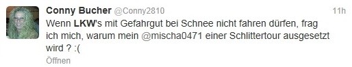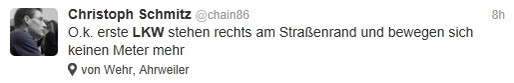 DasEichi: Liebes Büro, ich komme später. Schuld sind die zwei LKW vor mir. Kommen einfach nicht aus dem Sack.