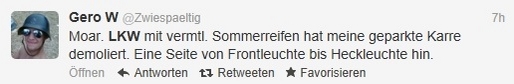 11 KommentareDieser Stein hat nicht den Scheinwerfer getroffen, sondern den Schädel dieses Schwachmaten: